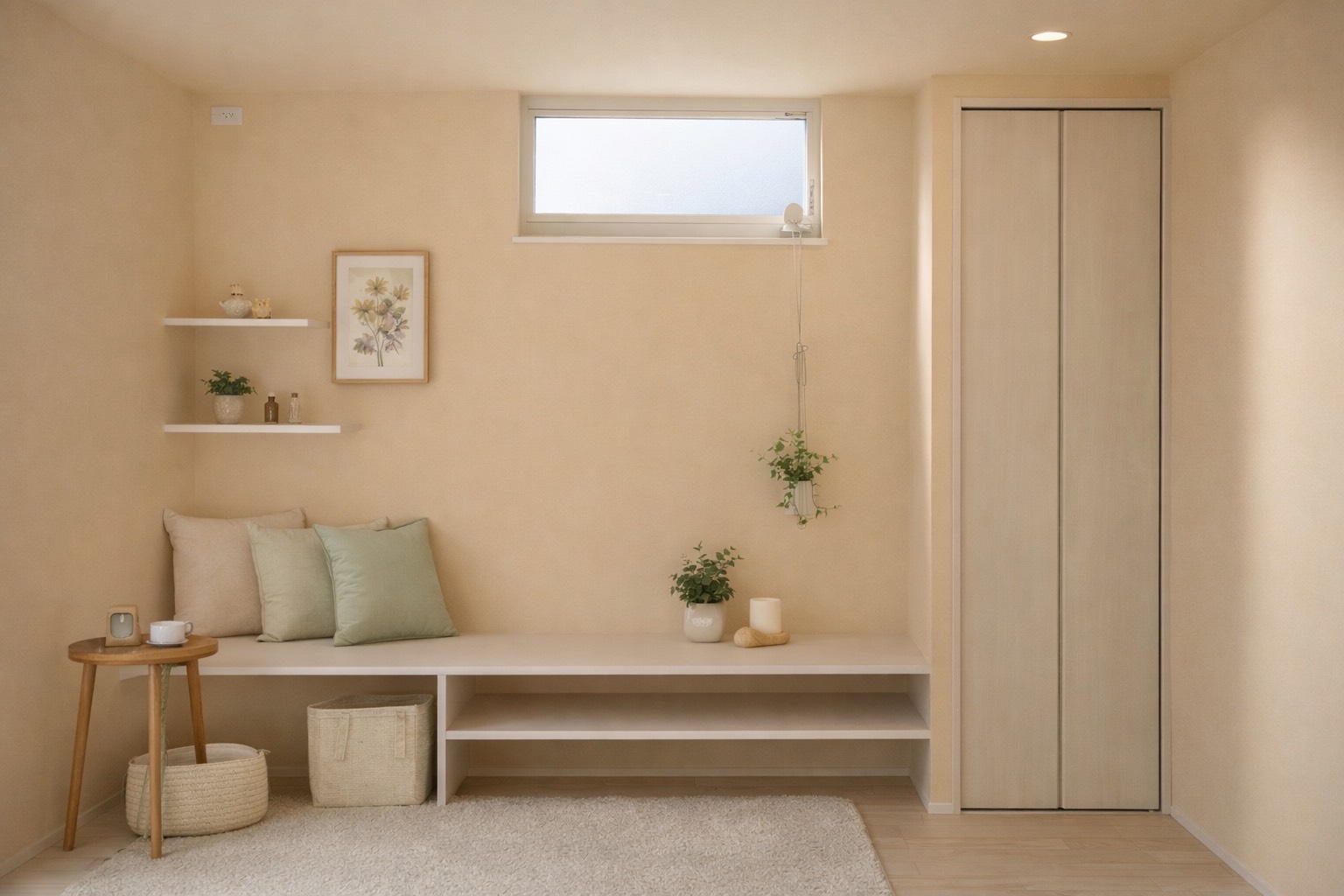 素材と色を抑え、暮らしにそっとなじむ空間構成。