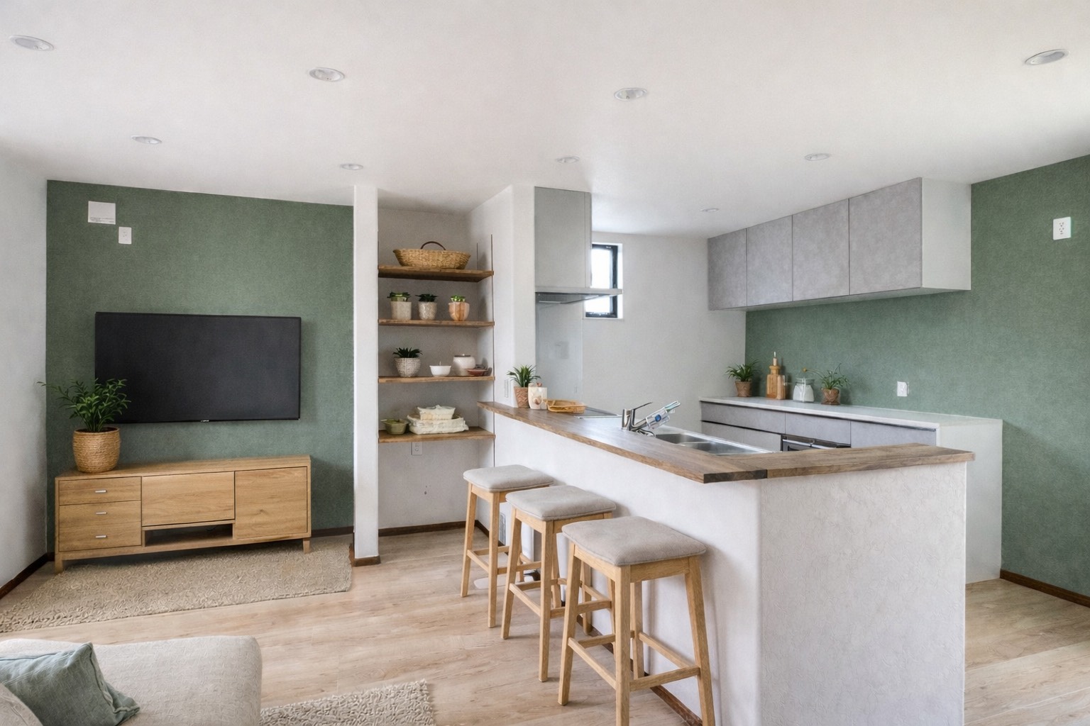 それぞれの距離感を大切にしながら、同じ時間を共有できる空間構成です。